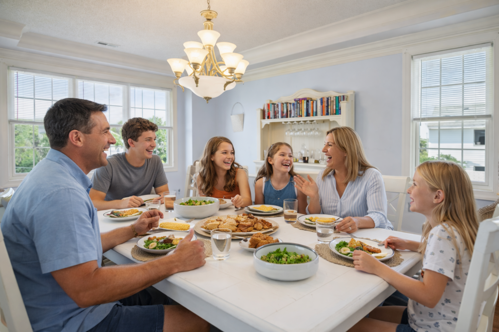 Evenings settle into something simple, dinner together, maybe a movie, maybe just conversation.